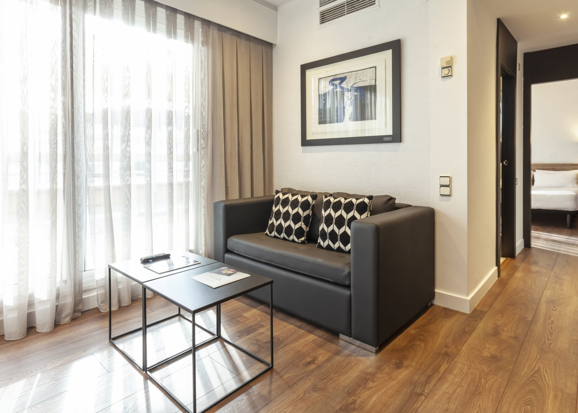 미로, 달리, 기노바르트 등 카탈루냐 예술가들의 독점 작품으로 꾸며져 있으며, 휴식 공간과 분리된 별도의 거실 공간을 갖추고 있습니다.